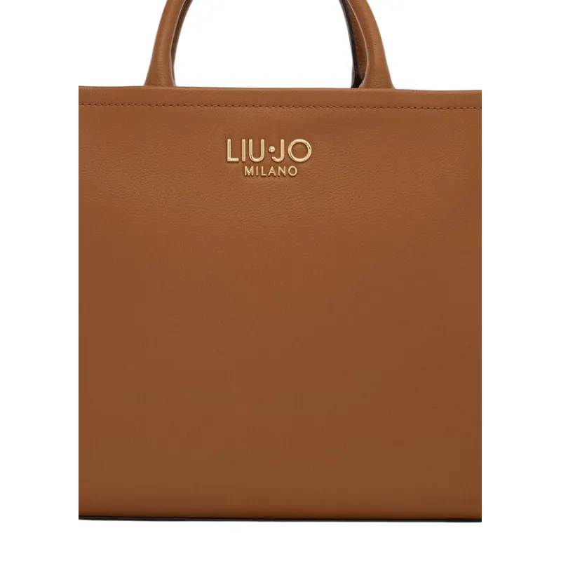 Liu Jo medium shopping bag with metal logo and adjustable strap, ginger bread