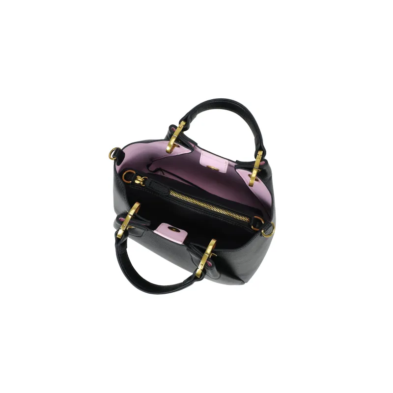 Golden details on the handles and the contrasting inner lining enhance its refined yet contemporary character.