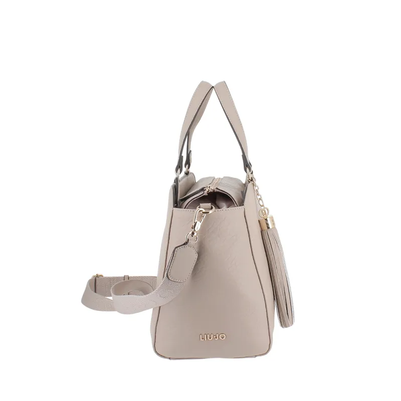Liu Jo medium shopping bag with metal logo and adjustable strap, sand