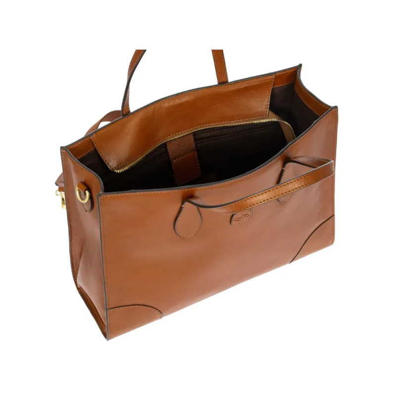Bric's Volterra small leather shopping bag with tablet pocket, brown