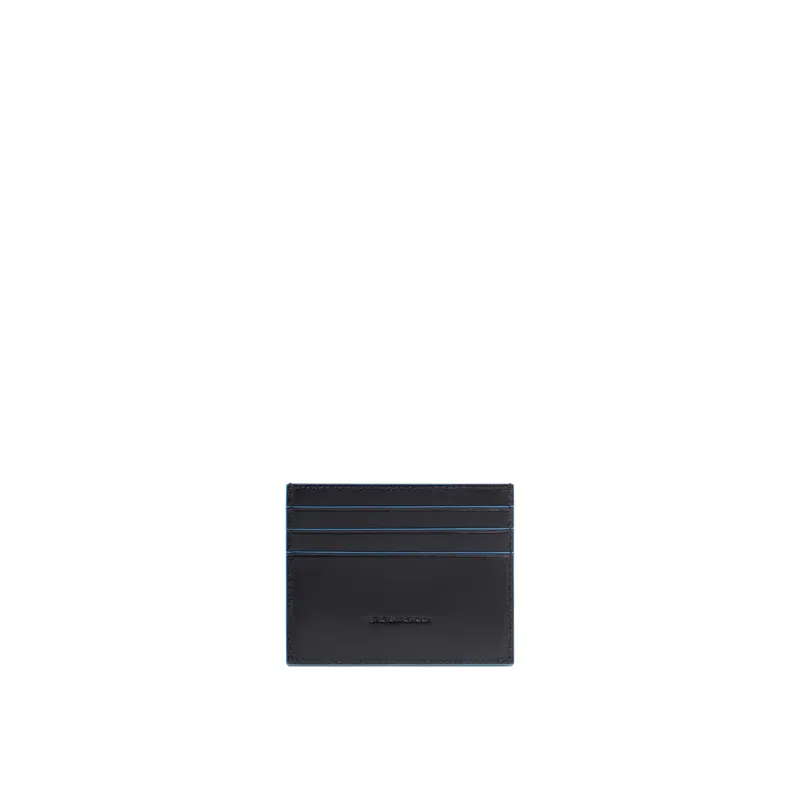 The Piquadro Blue Square slim card holder is crafted from high-quality genuine leather, offering a refined look with exceptional durability.