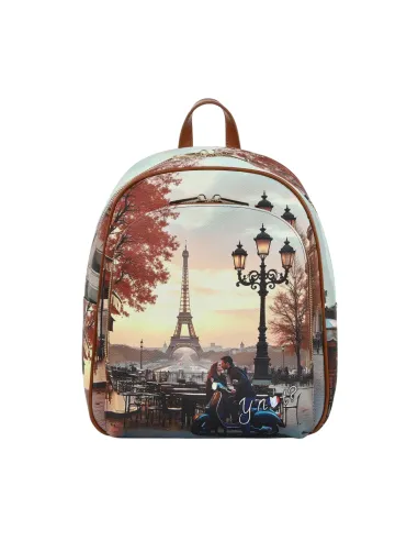 YNot Yes Bag women's backpack with zip, printed waterproof fabric and adjustable straps, kisses from Paris
