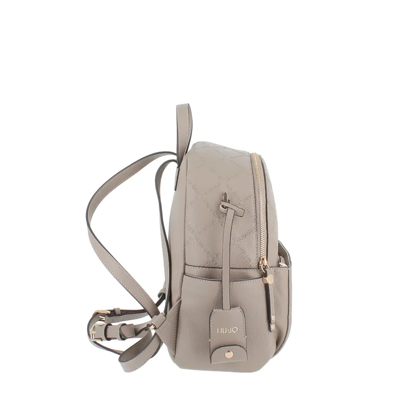 Liu Jo womens backpack in faux leather with embossed all over logo, side pockets and front zip pocket. Adjustable straps.