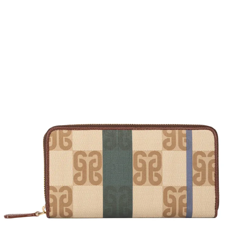 The Piero Guidi PG Monogram 1970 women’s wallet blends elegance and functionality for everyday use. Crafted from embossed printed fabric with the signature PG Monogram 1970 pattern and finished with leather trims, it offers durability and timeless style.