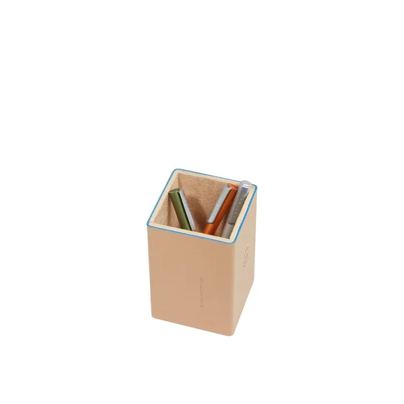 Il bicchiere portapenne in pelle da scrivania Piquadro è un accessorio elegante e funzionale, ideale per organizzare penne, matite e piccoli strumenti da ufficio. Realizzato in pelle naturale di alta qualità, dona un tocco di stile alla scrivania, combinando raffinatezza e praticità. Perfetto sia per ambienti lavorativi professionali che per la casa.