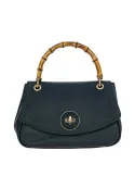 Borsa donna della collezione Gondola di Bric's, dotata di manico rigido in vero bamboo, tracolla sottile in pelle removibile, chiusura con dettaglio girevole e pattina, tasca esterna con zip, tasche interne. Le parti metalliche con finitura oro, rifinita internamente dalla fodera in morbido tessuto.