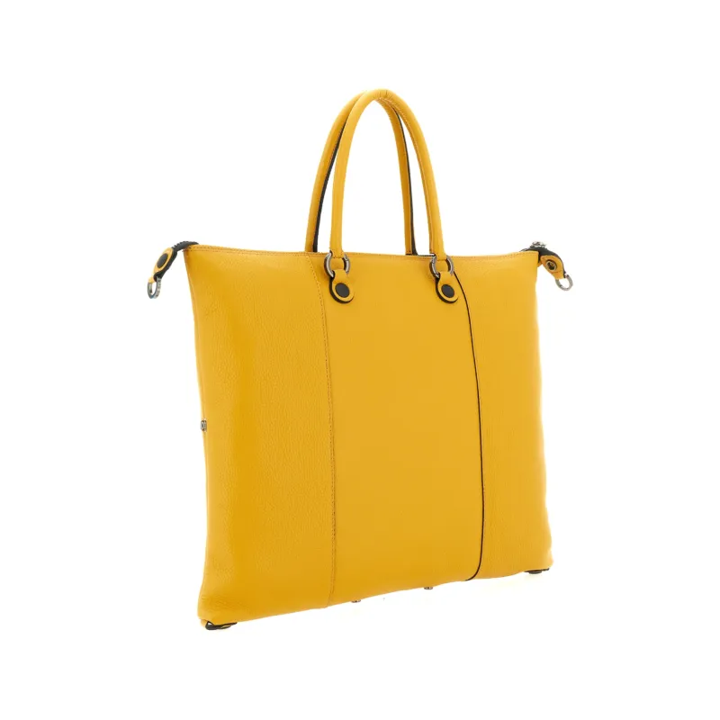 La Shopping large G3 PLUS della collezione Icon Black di Gabs è la scelta perfetta per chi desidera un'accessorio versatile e di alta qualità. La borsa è realizzata in pelle naturale dall'effetto opaco e corposo, è trasformabile e può essere utilizzata come borsa piatta, shopper, bauletto, monospalla e zaino. Questa versatilità la rende perfetta per ogni occasione, dal lavoro al tempo libero, Dotata di chiusura principale con cerniera e classico tira zip Gabs, finitura e accessori in canna di fucile, interno foderato con tasca interna con chiusura a zip e due tasche porta oggetti, i manici sono removibili da 40 cm, due tracolle a nastro di lunghezza 122 cm.
