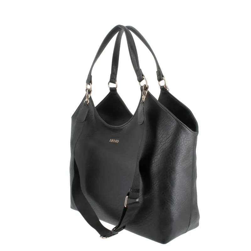 Dotata di due manici che consentono di indossarla comodamente sottobraccio, è provvista anche di tracolla regolabile e rimovibile per un utilizzo versatile, sia a spalla che a bandoliera. Il logo Liu Jo impresso sulla parte frontale e il logo in metallo sul retro aggiungono un tocco ricercato e distintivo.