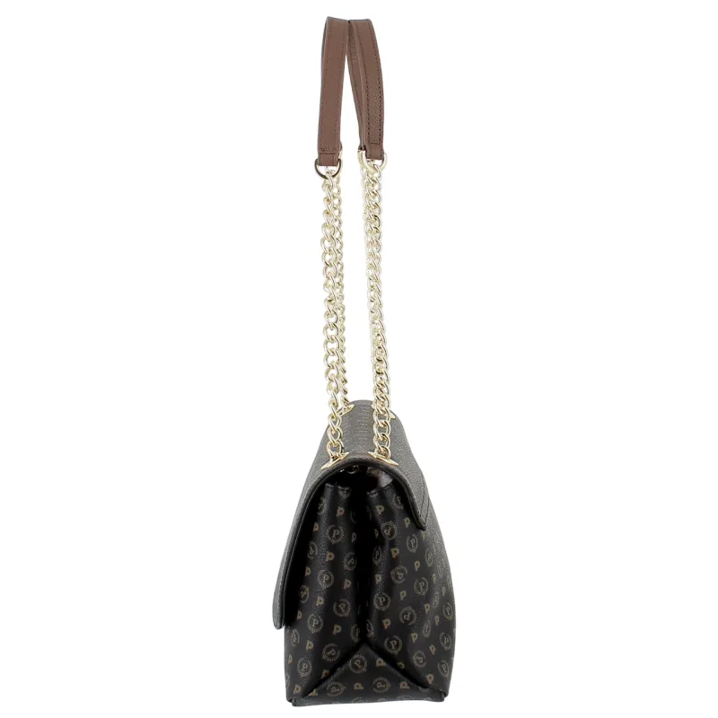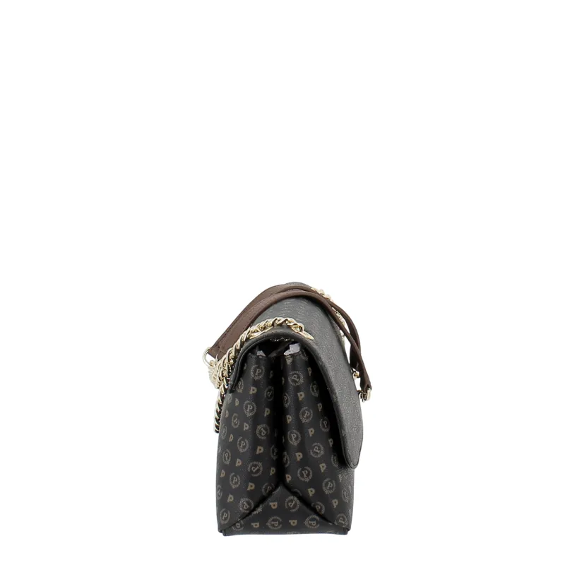 Borsa donna media misura con pattina Pollini Heritage, nero-marrone