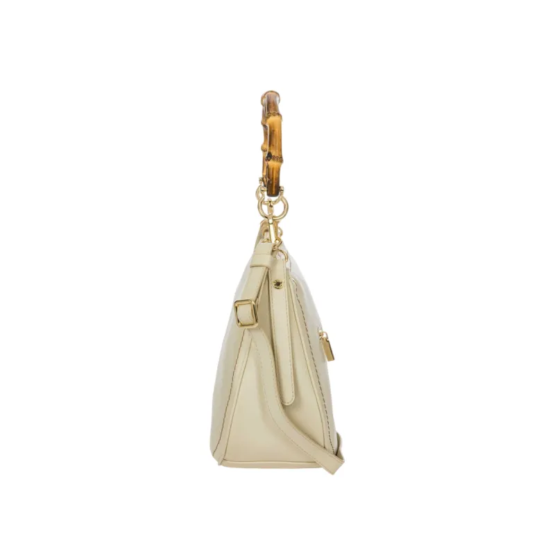 Borsa a spalla della collezione Gondola di Bric's, dotata di manico e tracolla removibili, chiusura con zip, tasca esterna con zip, tasche interne, parti metalliche con finitura oro. Rifinita internamente dalla fodera in morbido tessuto. Personalizzabile con la tracolla aggiuntiva.