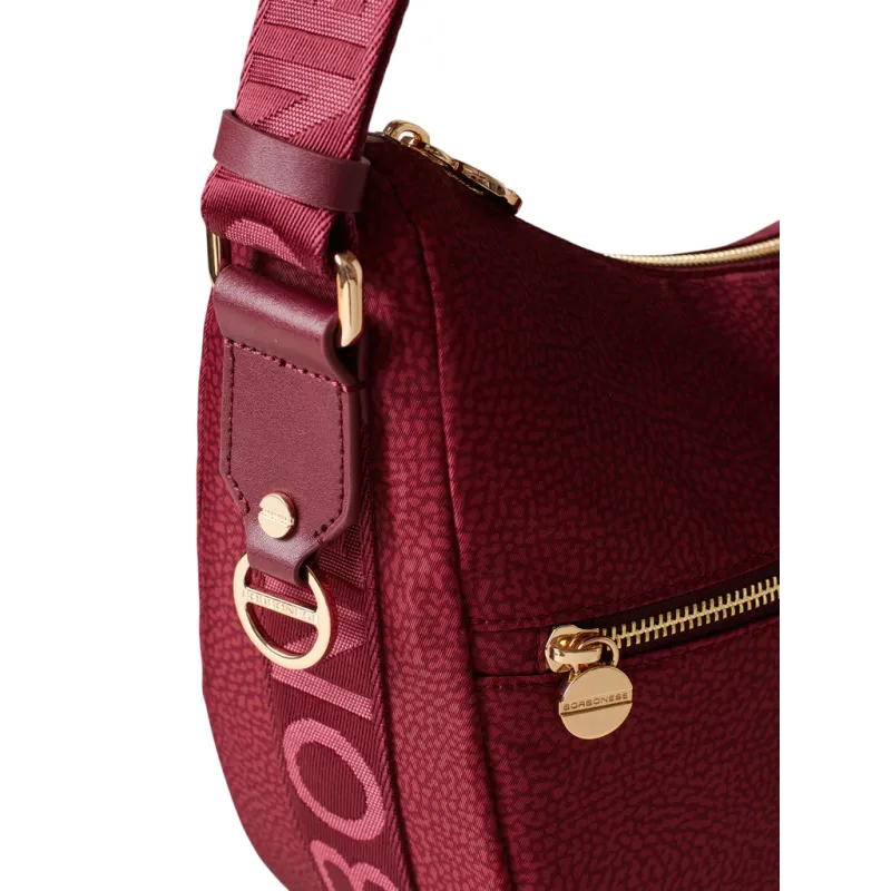 Borsa donna della collezione Jet di Borbonese, realizzata in tessuto riciclato leggero e resistente, dotata di apertura con cerniera, tasca frontale con cerniera e tracolla regolabile con scritta Borbonese.