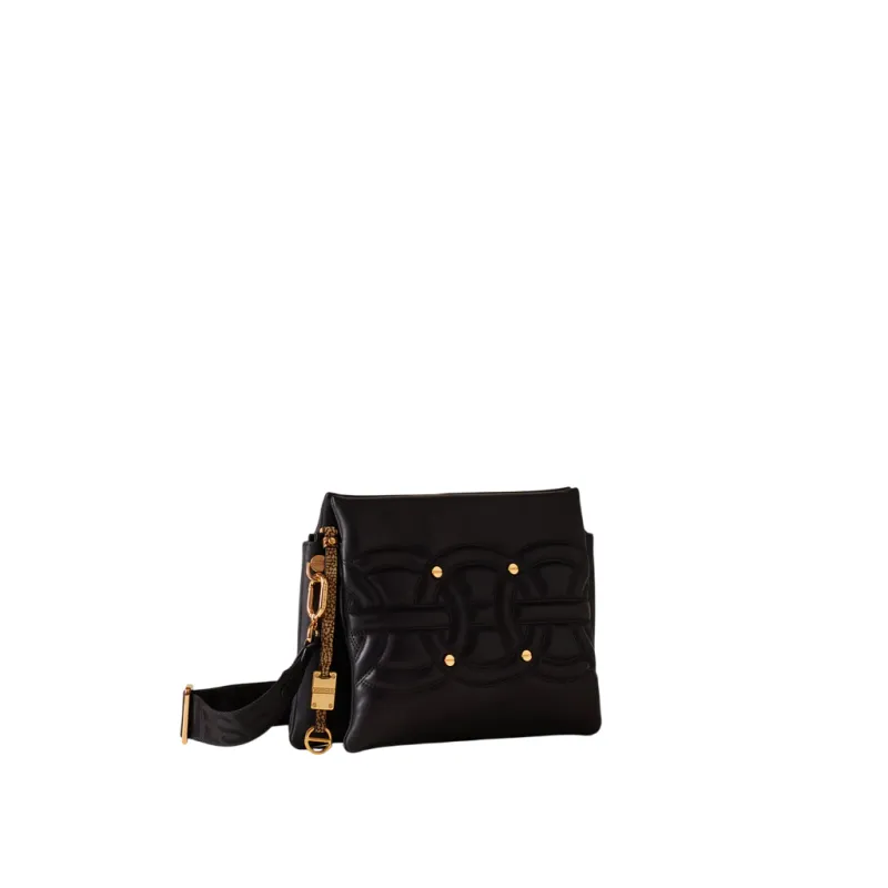Completano il design le metallerie oro lucido, che donano luce e carattere a un accessorio elegante e contemporaneo.
