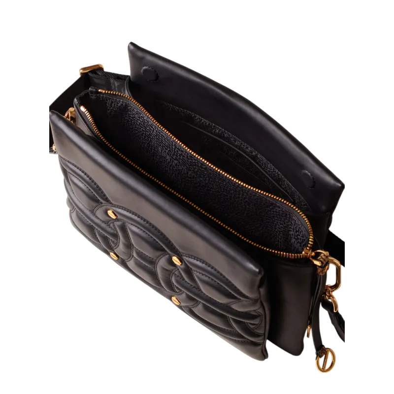 Realizzata in vitello nappato matelassé con motivo a vite e dettagli in camoscio OP, unisce materiali pregiati e design raffinato in una silhouette senza tempo.