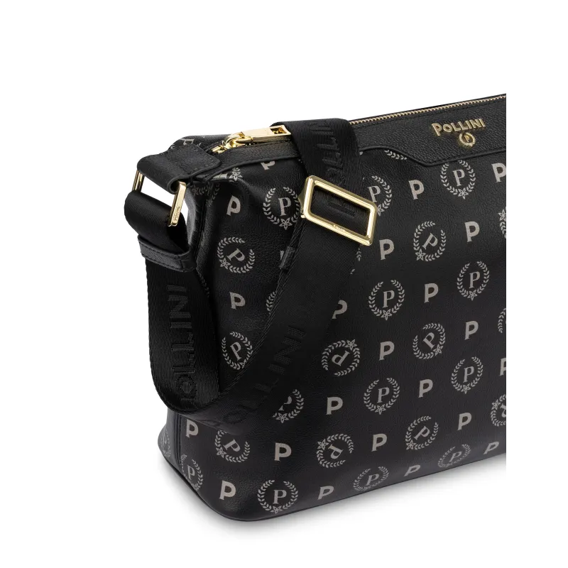 La borsa a spalla Heritage Re Edition di Pollini unisce praticita, stile e un carattere distintivo grazie al Pattern macro che ne valorizza il design. Compatta e ideale per l'uso quotidiano, presenta una tracolla regolabile in nastro di nylon jacquard logato che assicura comfort e una vestibilita personalizzata. Il portachiavi a clochette amovibile aggiunge un dettaglio iconico, mentre la galvanica Light Gold illumina i dettagli metallici con un tocco elegante. La chiusura con zip in testa garantisce sicurezza e facilita duso. Linterno foderato e organizzato con una tasca con zip e una tasca aperta, perfette per mantenere ogni oggetto in ordine durante la giornata.