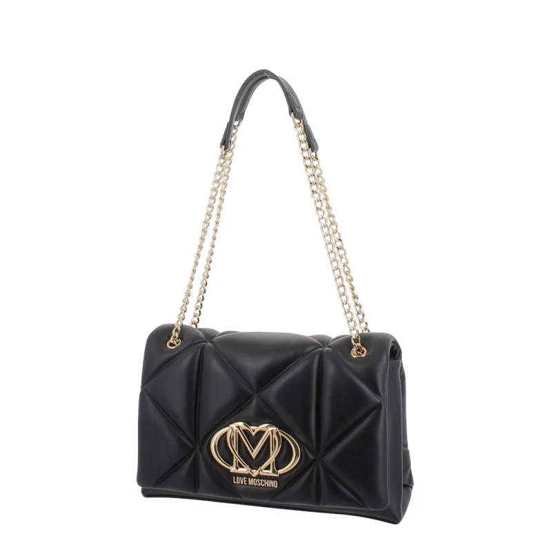 Borsa a spalla con patta trapuntata Love Moschino, nera