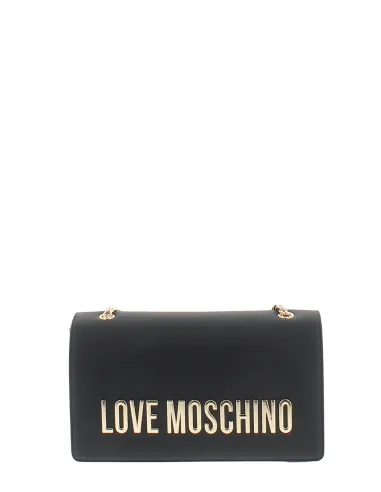 Borsa a spalla con tracolle in catena Love Moschino, nera