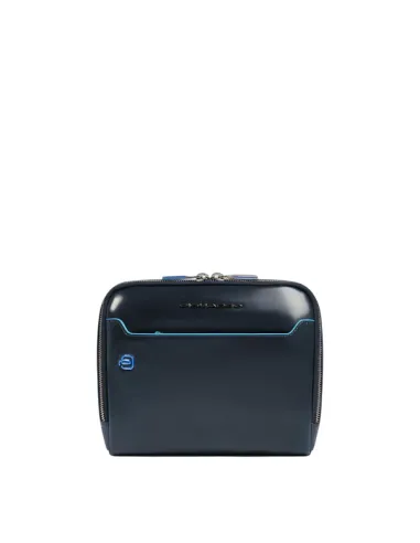 Borsello uomo in pelle Piquadro schermato con protezione RFID, blu