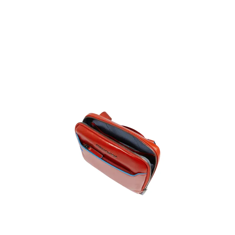 Borsello uomo in pelle Piquadro schermato con protezione RFID, arancio