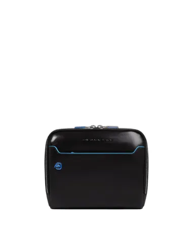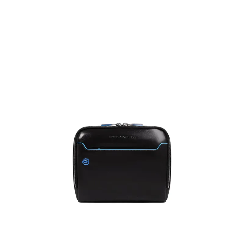 Borsello uomo orizzontale dalle dimensioni contenute della collezione Blue square di Piquadro, realizzato in pelle naturale, dotato di un comparto con chiusura con zip, tracolla regolabile, schermato con protezione antifrode RFID.