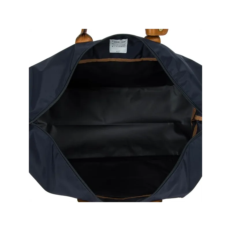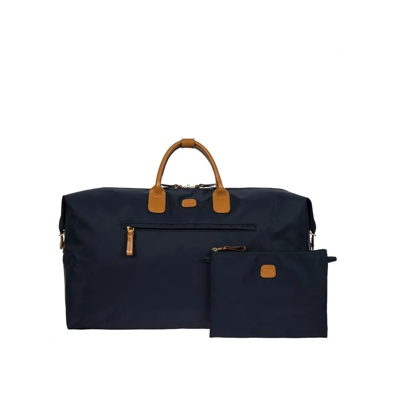 Il borsone 2 in 1 della X-Collection di Brics è realizzato in nylon riciclato, leggero, robusto e impermeabile, con manici in morbida pelle, water-resistant. La tasca interna con zip è staccabile e può diventare una pratica trousse o mini bag grazie alla tracollina in dotazione. Esternamente è dotato di tasca con zip. Sul retro è presente una fascia per il fissaggio sulla maniglia del trolley. L'apertura principale è dotata di zip con doppio cursore. La forma capiente lo rende particolarmente funzionale, e le maniglie in pelle conferiscono un tocco luxury.