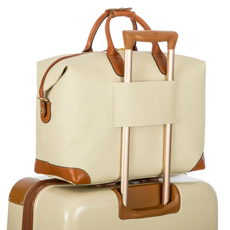 Borsone 2 manici della collezione Firenze di Brics, dotato di apertura con cerniera, tracolla regolabile, tasca frontale con cerniera e passante posteriore per aggancio al trolley.