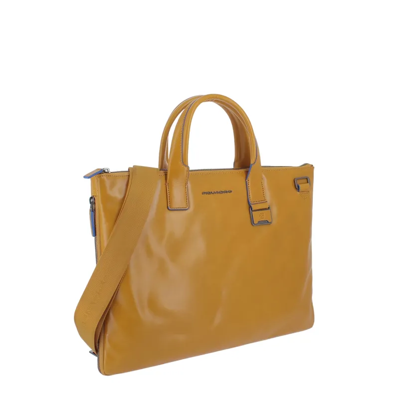 Cartella 2 manici più tracolla della collezione Blue Square di Piquadro, dotata di apertura con zip, possibilità di espansione, all'interno completa di apposito comparto per pc da 15,6 pollici, passante posteriore per aggancio al trolley.