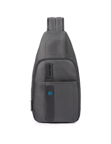 Monospalla porta ipad della collezione P16 di Piquadro,dotao ampio scomparto con apertura con cerniera e tasca frontale.