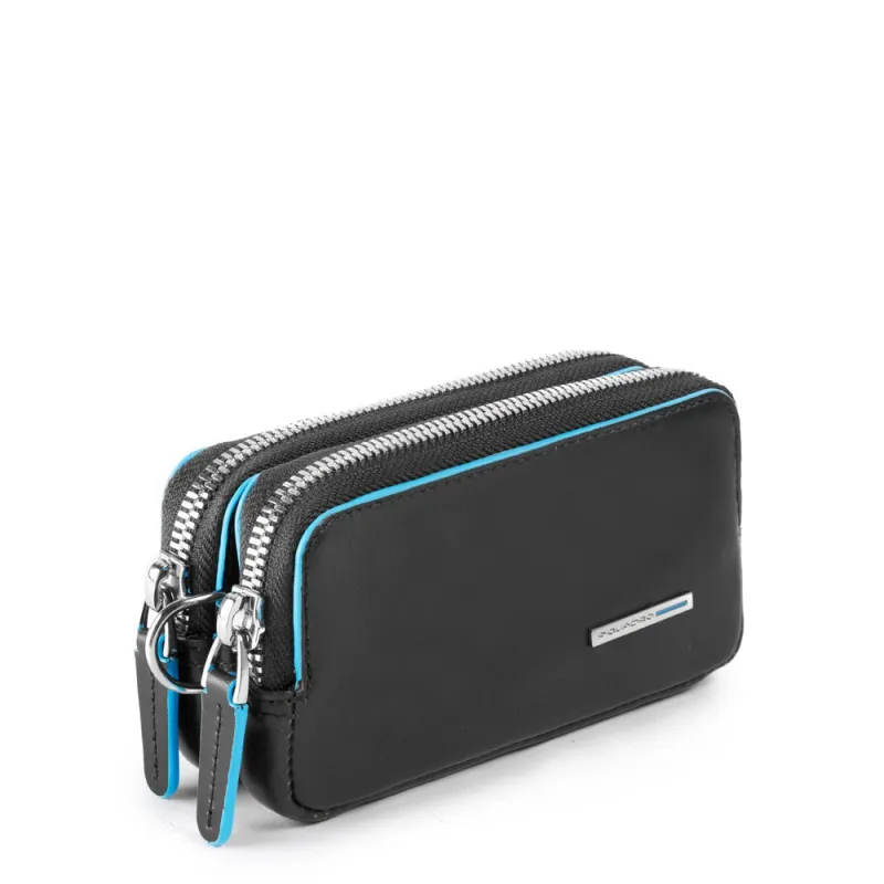 Pochette con manico misura piccola della collezione Blue Square di Piquadro, dotata di doppio comparto con apertura con cerniera.