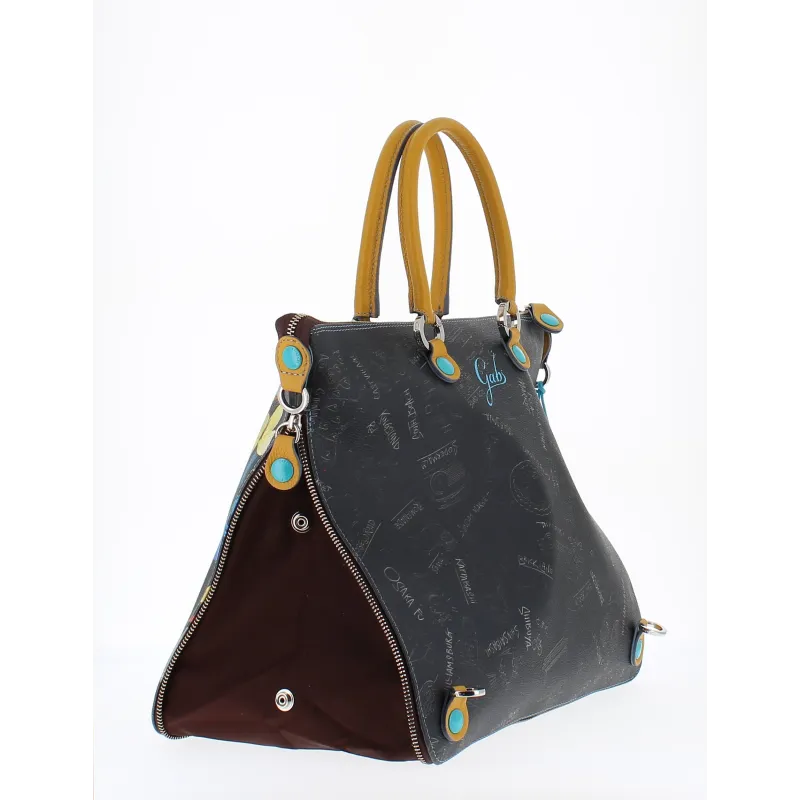 Week una delle piu' riconosciute borse Gabs nella versione Plus, realizzata in tessuto goffrato a fantasia con finiture in pelle naturale, dotata di apertura con cerniera, doppio manico, due tracolle che possono essere agganciate nella parte posteriore della borsa per trasformarla in zaino, possibilita' di espansione, possibilita' di sganciare i manici e trasformare la borsa in borsa a spalla.