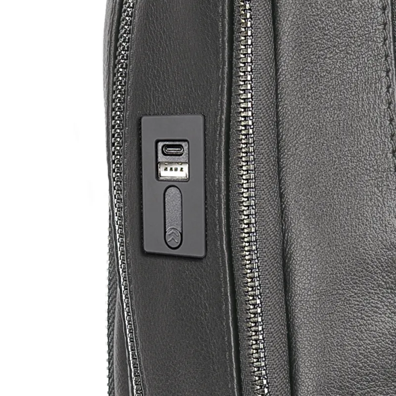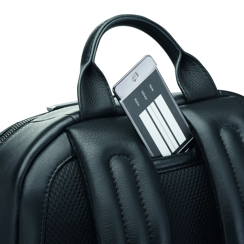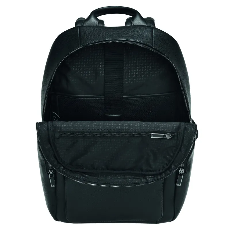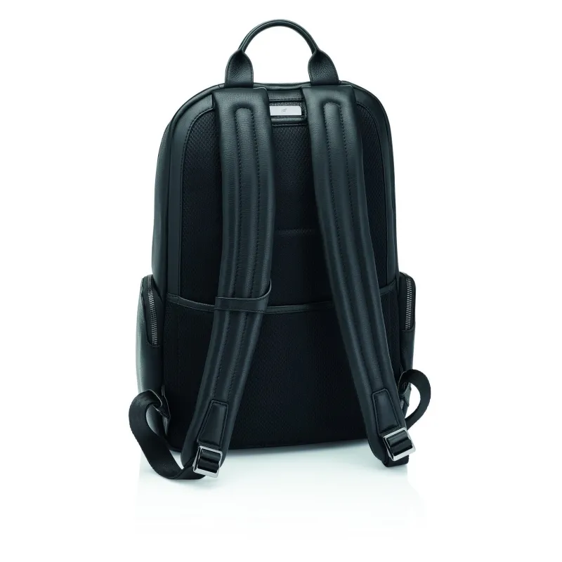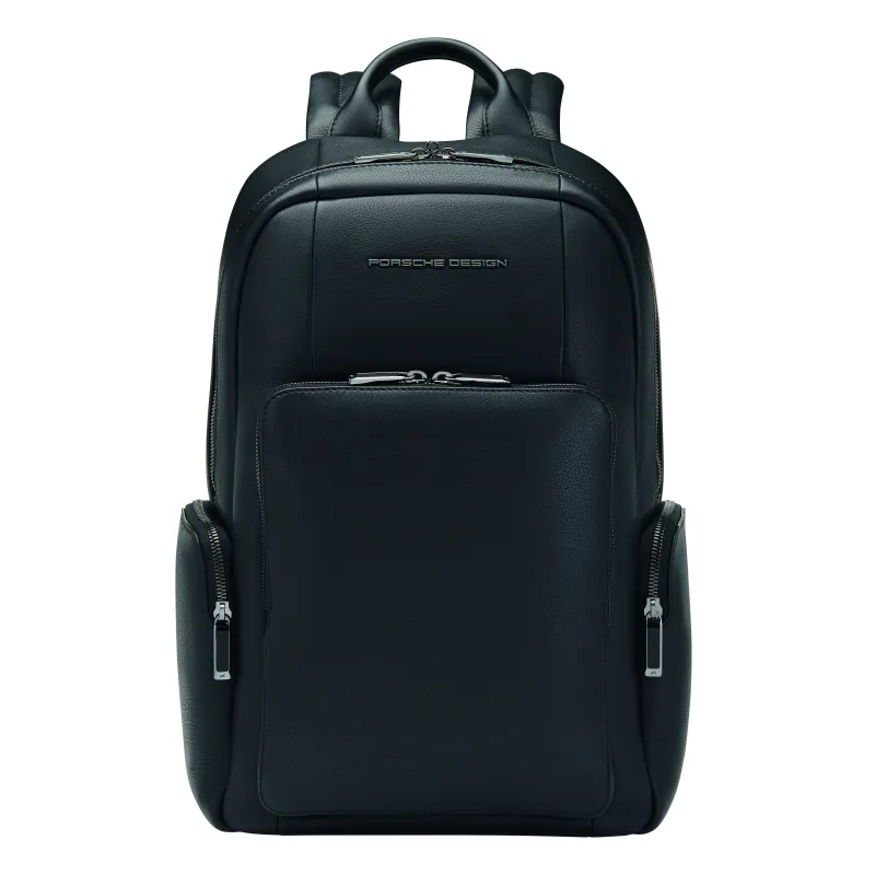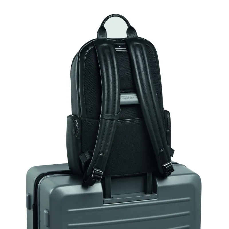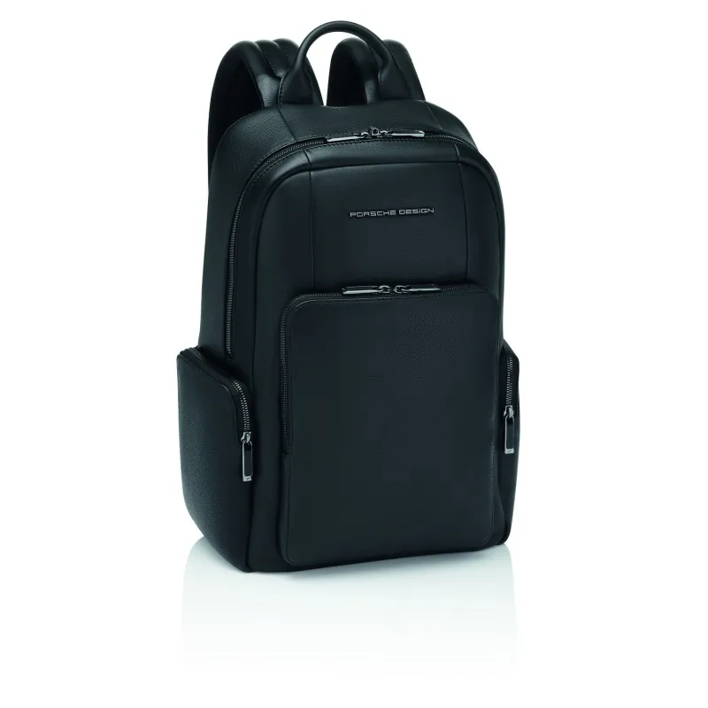 Zaino della collezione Porsche Design, realizzato in pregiata pelle naturale, dotato di comparto con cerniera organizzato con vano imbottito per computer e tablet, tasca frontale con cerniera, tasche laterali, spallacci in pelle imbottiti e traspiranti, schienale traspirante, passante posteriore per aggancio al trolley, accesso usb (USB A e USB C) per tutti gli smartphone di ultima generazione con sistema di chiusura di sicurezza e antipioggia.