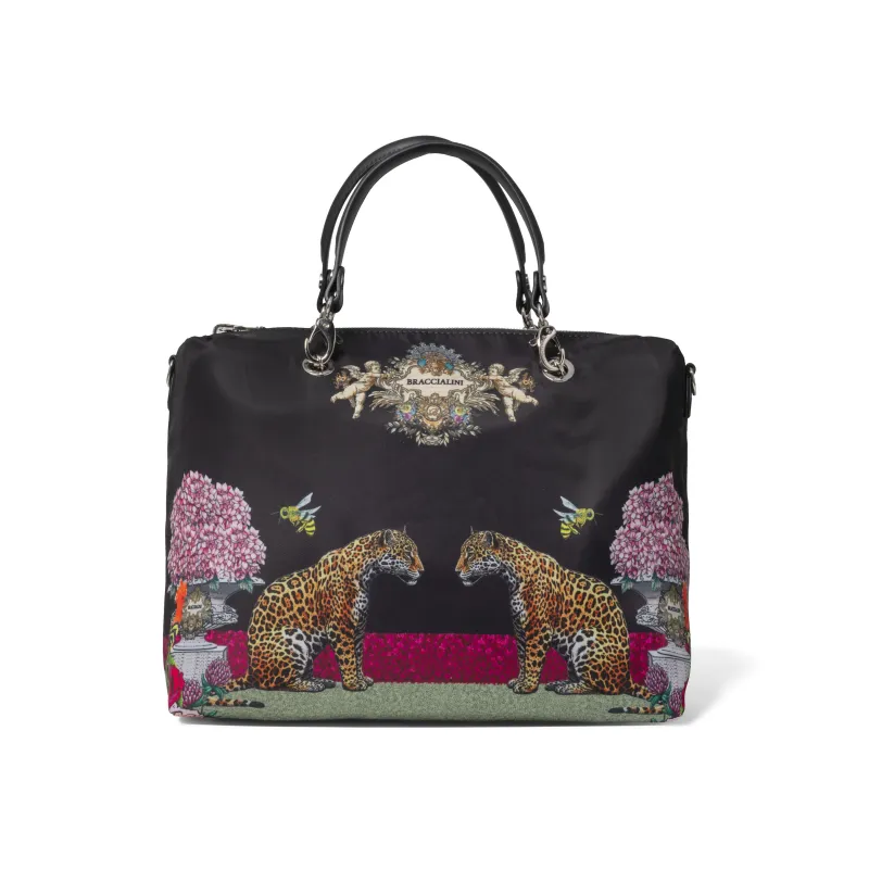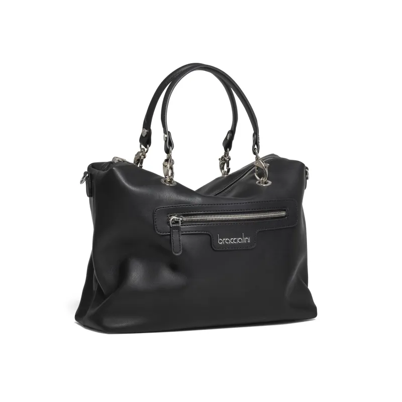 Borsa a tracolla con patta Pollini heritage nero-avorio