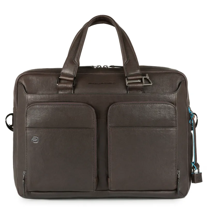 Cartella 2 manici della collezione Black Square di Piquadro, completa di tracolla removibile, un comparto accessibile con zip con spazio interno dedicato per Pc da 15 pollici e Ipad, doppia tasca esterna sul frontale per oggetti di prima necessità, sulla parte posteriore è dotata di passante per aggancio al Trolley.