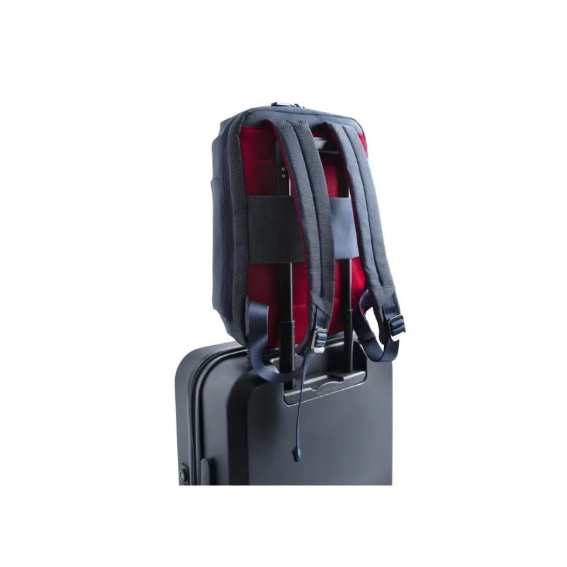 Zaino compatto della collezione Cross di Nava Design, realizzato in tessuto tecnico con lavorazione a nido d'ape e PU effetto lucido/opaco, dotato di unico scomparto con apertura con cerniera, tasca frontale chiusa con zip colorata a contrasto. Il comparto interno ampio e' organizzato con portapenne, tasche porta device, documenti, oggetti personali, e tasca dedicata per notebook e tablet. Nella parte posteriore dodato di tasca per aggancio al trolley, lo schienale e gli spallacci sono imbottiti e traspiranti. Uno zaino informale, completamente attrezzato, dallo stile contemporaneo, utile per il lavoro ma anche nel tempo libero.