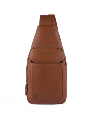 Monospalla in pelle della collezione Black Square di Piquadro, dotato di ampio comparto con apertura con cerniera, vano porta ipad interno.