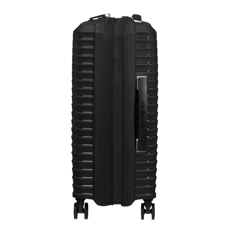 Trolley cabina espandibile della collezione Upscape di Samsonite, realizzato in resistente polipropilene, dotato di chiusura con combinazione e TSA necessaria per i viaggi in USA, porta USB per la ricarica dei dispositivi elettronici, traino 4 ruote.