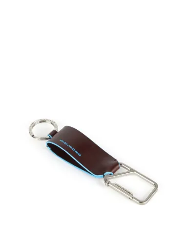 Portachiavi Piquadro della collezione Blue Square, realizzato in pelle naturale con anello e moschettone in metallo.