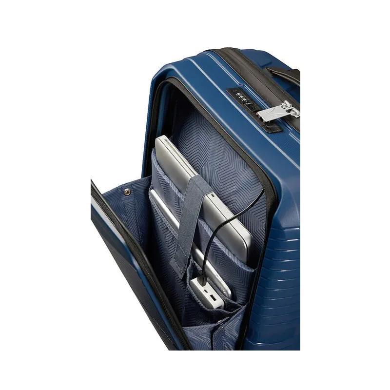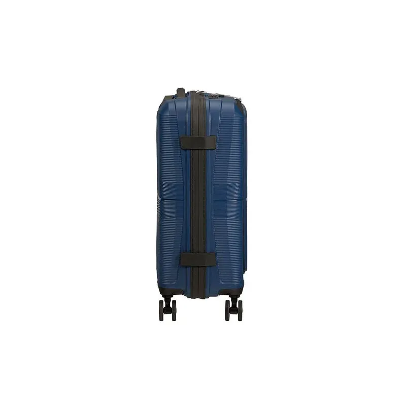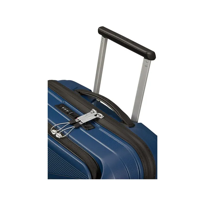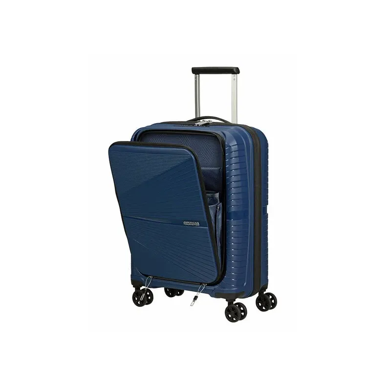 Trolley misura cabina della collezione Airconic di American Tourister, realizzato in Polipropilene, dotato di scomparto principale con chiusura con cerniera, combinazione e TSA necessaria per i viaggi in USA, tasca frontale organizzata per custodire un notebook da 15,6 pollici, tablet ed accessori, sistema di traino a 4 ruote.