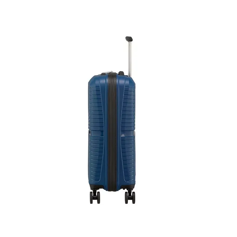 Trolley cabina della collezione Airconic di American Tourister dotato di doppio comparto con divisorio dotato di tasca con cerniera, elastici fermabiti, traino 4 ruote, chiusura con combinazione e TSA necessaria per i viaggi in USA.