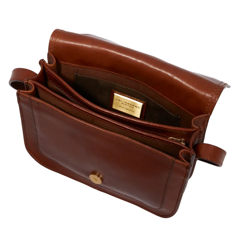 Borsa a tracolla con patta Pollini heritage nero-avorio
