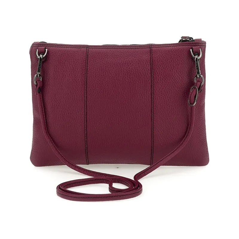 Borsa a tracolla piccola in vitello nappato Borbonese, merlot