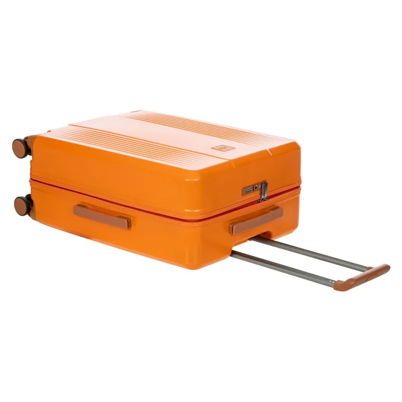 Trolley medio della collezione Ravenna di Brics, realizzato in resistente policarbonato, dotato di traino 4 ruote, chiusura con combinazione a 3 cifre e TSA necessario per i viaggi in USA, internamente doppio scomparto con divisorio con cerniera dotato a sua volta di tasca con cerniera ed elastici fermabiti.