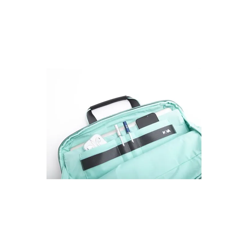 Cartella 2 manici porta computer della collezione Cross di Nava Design, realizzata in tessuto poliestere, dotata di unico scomparto con chiusura con cerniera,internamente organizzata con una tasca imbottita porta computer e altre tasche per penne, smartphone, tasca frontale chiusa con zip. Tracolla regolabile e removibile e tasca per l'aggancio al trolley.