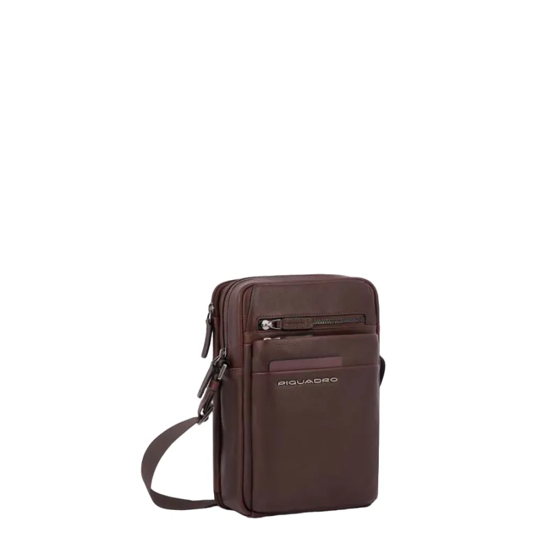 Borsello piccolo in pelle a due scomparti Piquadro Paavo Testa di moro