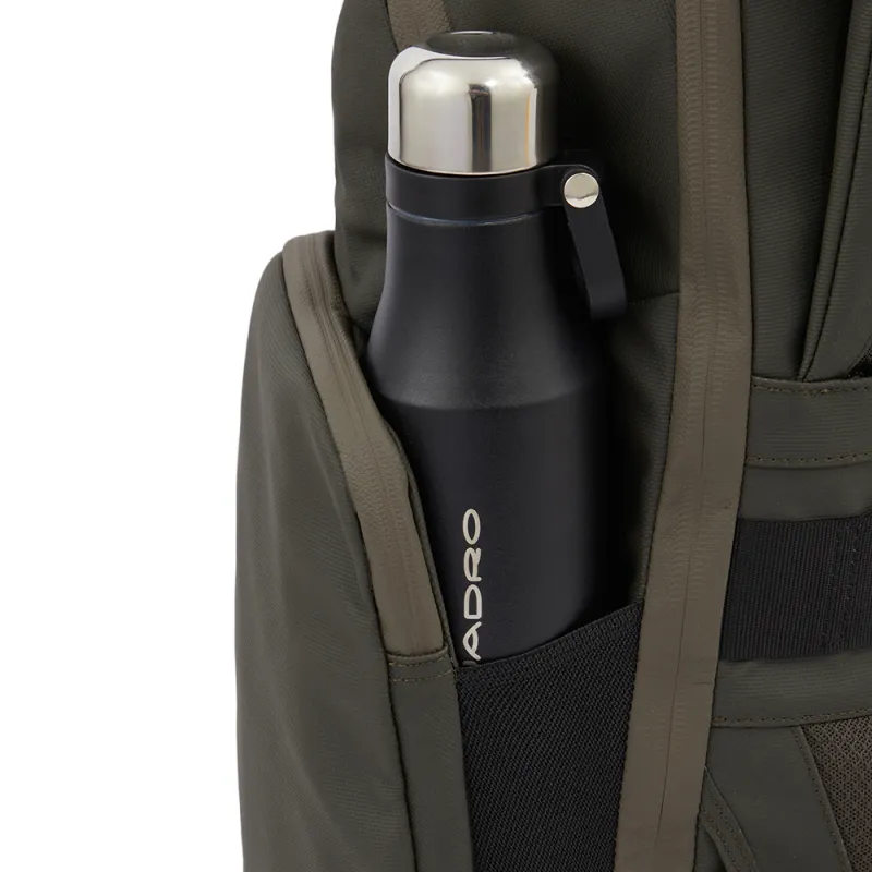 Zaino porta computer da 15,6" con luce led della collezione Hidor di Piquadro, realizzato in resistente tessuto impermeabile, dotato di due comparti con chiusura con cerniera, sistema di aggancio al trolley con passante, cinghia sternale regolabile, tasche laterali porta bottiglia/ombrello, due comode tasche frontali con cerniera, vano porta scarpe. Gli spallacci sono imbottiti e regolabili, lo schienale traspirante.