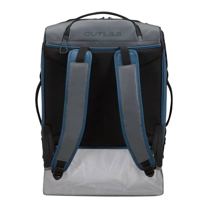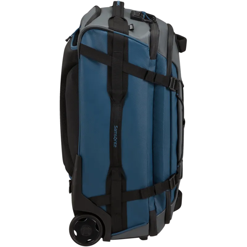 Borsone con portabilità a zaino della collezione Outlab Pardiver di Samsonite, il tessuto esterno è realizzato con 100% PET riciclato post consumo, la fodera interna e il nastro interno della cerniera sono realizzati con il 97% di PET riciclato post-consumo. Dotato di un ampio scomparto con chiusura con cerniera, traino a due ruote con carrello bitubo, spallacci a scomparsa regolabili.
