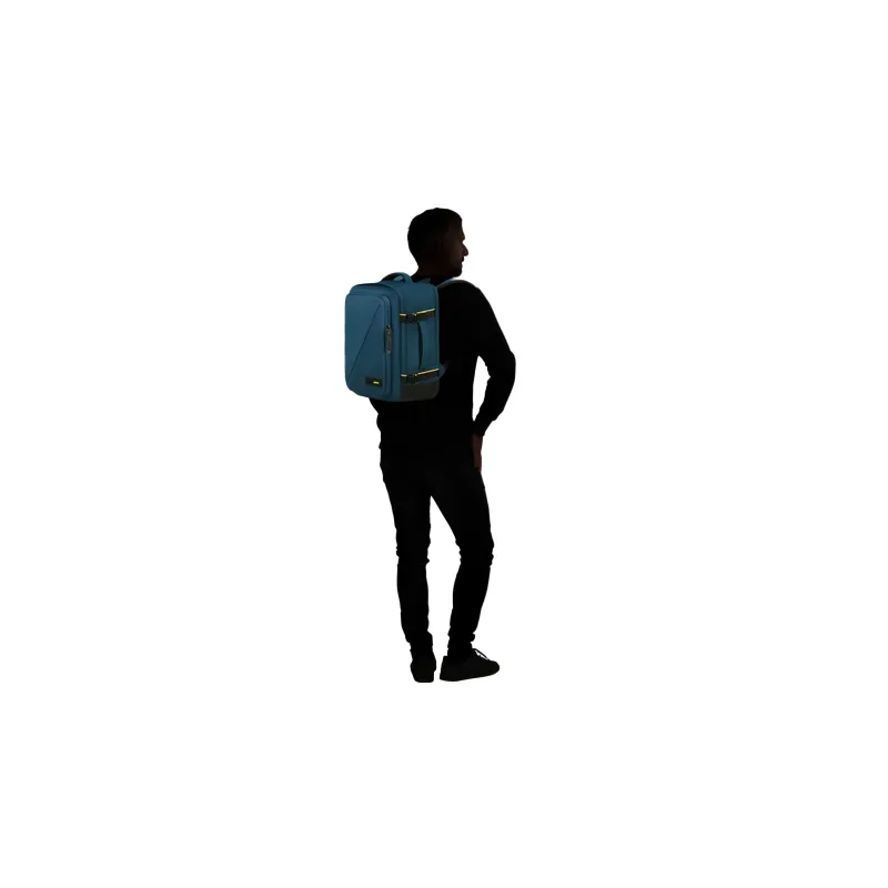 Zaino da viaggio della collezione Take2cabin American Tourister, realizzato con tessuti rigenerati, dotato di ampio comparto per indumenti e comparto posteriore per computer da 15,6".