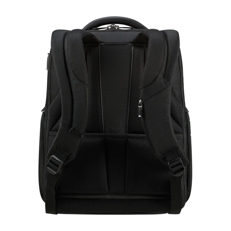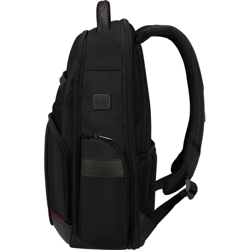 Zaino porta computer da 15,6" della collezione Pro-Dlx di Samsonite, realizzato in nylon balistico, dotato di due comparti con chiusura con cerniera, porta USB integrata per la ricarica dei dispositivi elettronici, tasca frontale e tasche laterali con zip, schienale traspirante con tasca per l'aggancio al trolley, spallacci ergonomici. Lo zaino inoltre è dotato di protezione anti-frode RFID, mettendo al riparo, da frodi su pagamenti e furti d'identità, grazie al materiale di blocco RFID posizionato tra lo strato esterno del prodotto e la fodera interna.
