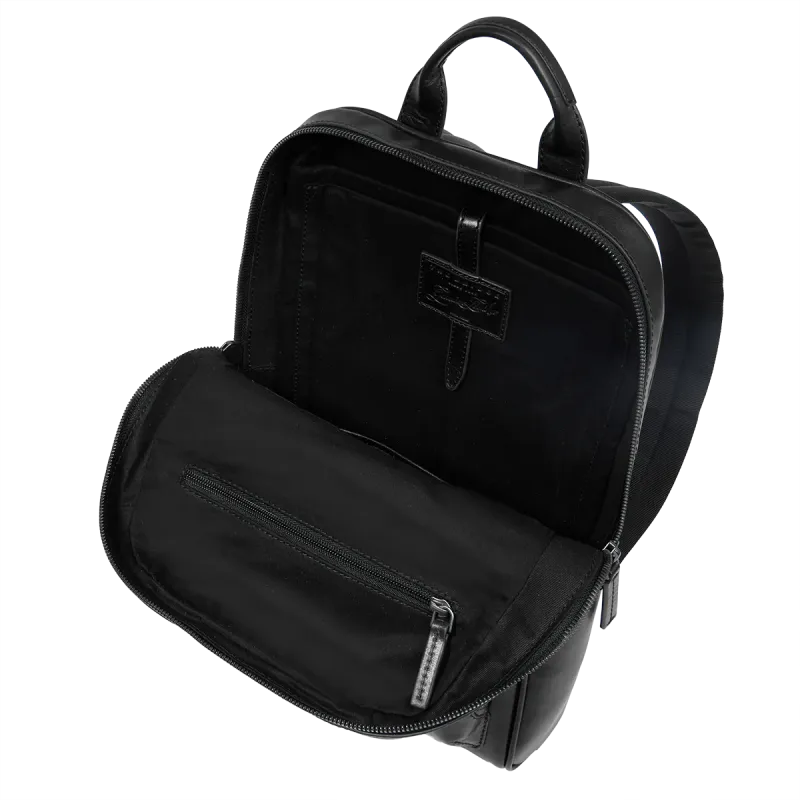 Zaino porta computer della collezione Filippo di The Bridge, realizzato in pelle naturale, dotato di unico comparto con chiusura con zip, schienale traspirante con sistema di aggancio al trolley, spallacci imbottiti e regolabili.