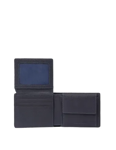 Portafogli uomo dalle dimensioni contenute della collezione Hedley di Piquadro, realizzato in pelle naturale, dotato di due comparti per banconote, fessure per carte di credito con protezione anti-frode RFID, tasca porta monete e finestra per documento.