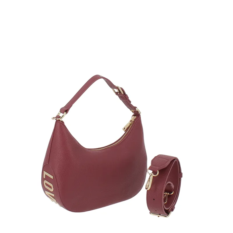 Borsa a tracolla piccola in vitello nappato Borbonese, merlot
